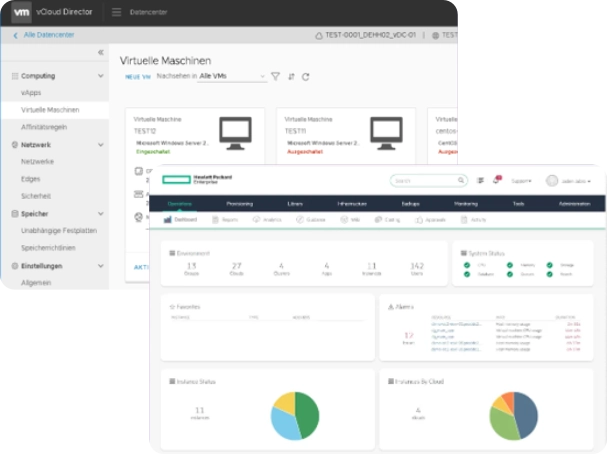 Mit VMware vCloud Director steht Ihnen ein leistungsfähiges Self-Service-Webinterface zur Verfügung, über das Sie Ihre gebuchten Ressourcen flexibel verteilen und verwalten können. So behalten Sie jederzeit die Kontrolle über Ihre Cloud-Umgebung.